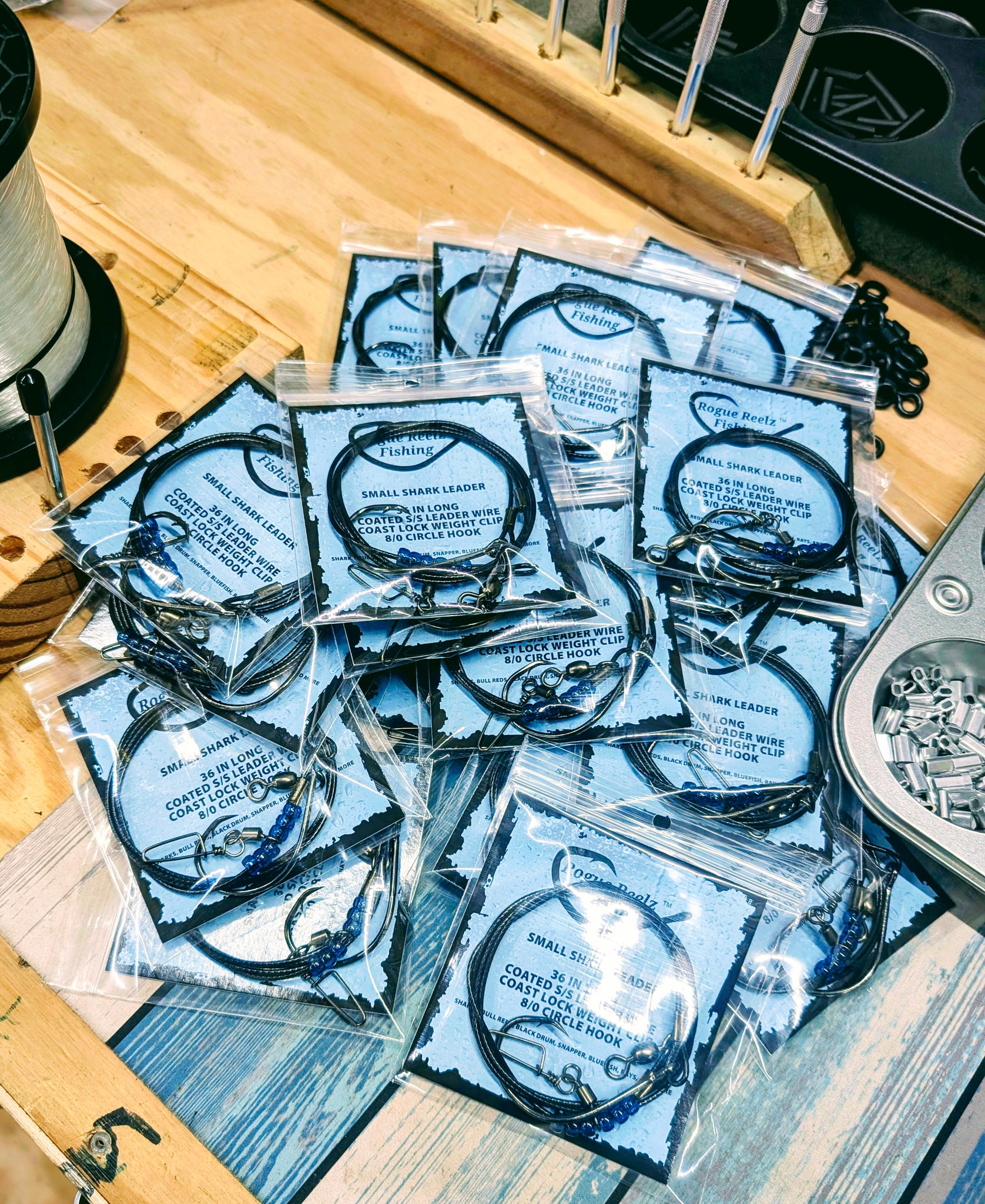Our Most Popular Casting Leader for smaller Sharks, Redfish, Black Drum, etc . I have used this leader for years. 480 lb nylon coated stainless steel fishing leader. 8/0 circle hook, 3/0 barrel swivel, coastlock snap weight slide with stop. Multiple uses in the Surf or by boat. Sharks, Bull Reds, Black Drum, Rays, etc.